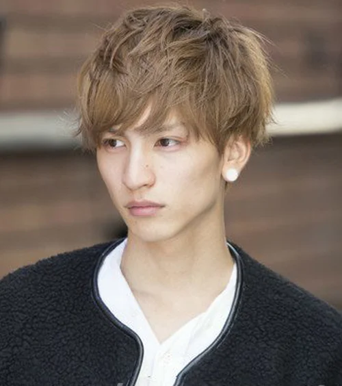 金棕色的染发颜色,展现出了男生的健康肤色,再加上蓬松的短发,制造出十足的定位烫效果,起到了很好的减龄功效。