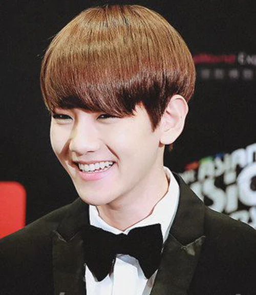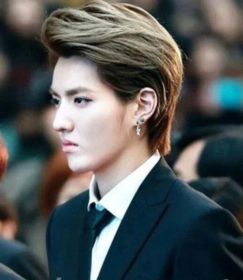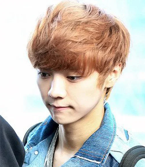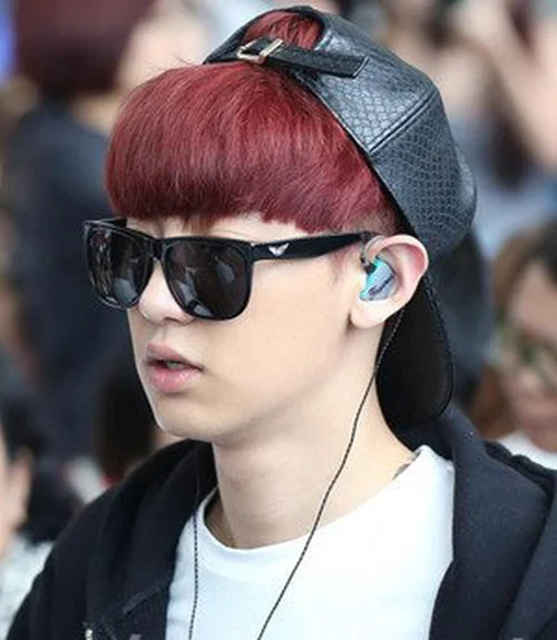 这款发型,非常适合发量多的男生,齐刘海修剪修饰脸型,时尚的染发令发丝很有质感,很有韩流范儿,同时有非常减龄。
