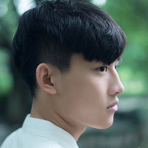 一款显露出男生阳光帅气的时尚波波头造型, 从侧脸看来不仅有电影男主的气质而且造型颇显时尚感,将中间的发丝稍微留长,两侧剃短显露出清新范,标准的小说人物。