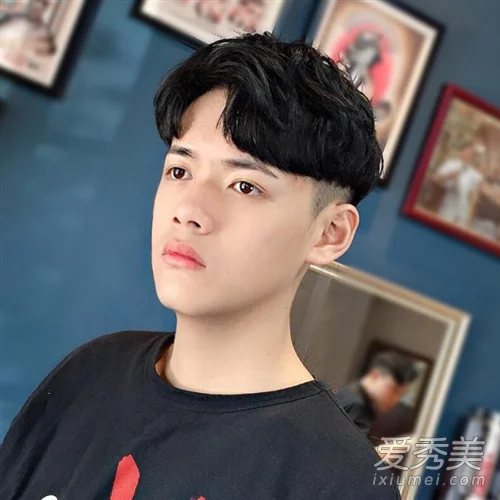 第一款发型就是很流行的二八分,这样的发型要求头发的长度要长一些,然后做个纹理烫,把两侧头骨转角的头发烫弯,就会自然的顺下来,耳朵上区的头发正常推短就可以,很多小姐姐都喜欢这样发型的男生~