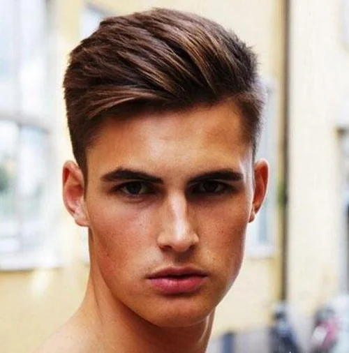 长方形:尝试偏分,寸头,常春藤头或简短的油头强调面部特点。