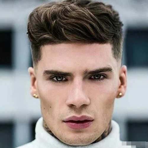 首先,你需要一个短的背部和侧面,以避免扩大头部。在最上面,你会想要一个可以拉长脸部的发型。有些高度或体积很大,但是男士们也可以选择不对称的款式,例如侧边刘海或者侧分梳理,以营造一种破坏脸部平衡的都市风格。