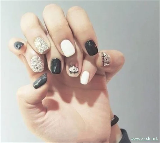 这款美甲属于比较时尚的美甲,而且眼睛的造型也是非常的有个性。