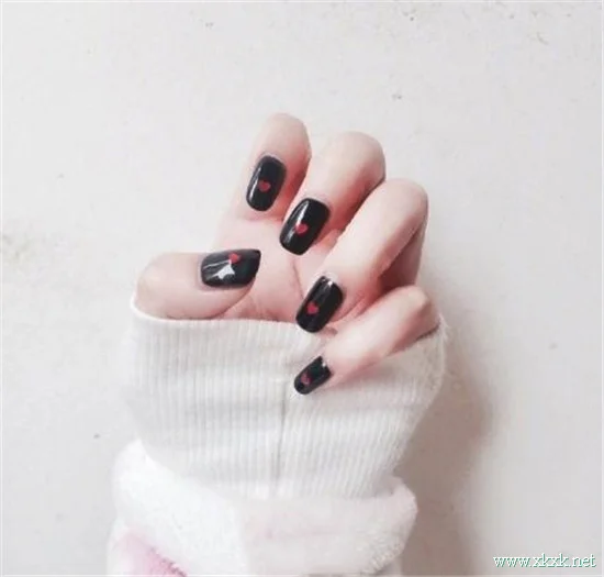 这款美甲有点像爱茉莉的一款唇釉,黑色搭配红心,不管是搭配什么风格都很不错。
