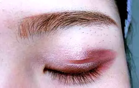 步骤五:接着用粉色进行晕染,记住眼头位置不要涂到哦~
