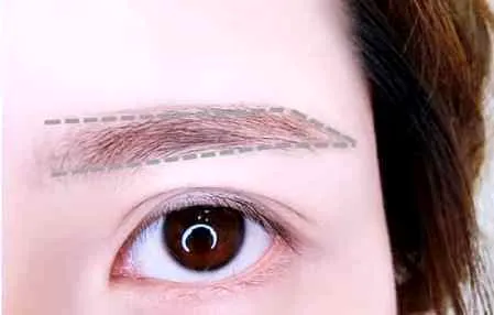 步骤一:直接从眉毛开始哈,记得先做好保湿工作,把底妆上了哦!按照虚线标注的形状,用眉笔勾勒出一个眉形的大致形状。