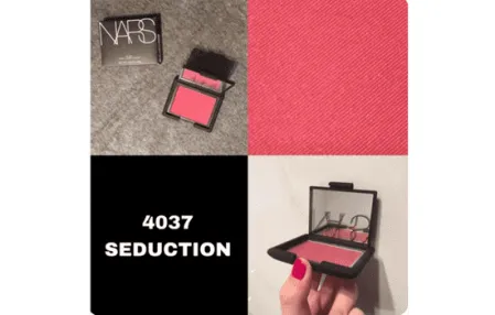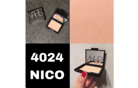 接近哑光,这块是nars 腮红里的“万精油”。可作为高光,定妆蜜粉,还可以作为柔焦粉。因为nars腮红大多比较重色,新手很容易化成“猴**”,只要在腮红上叠加nico,就能柔化重色腮红的颜色。
