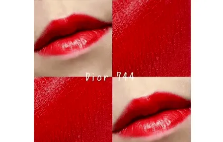 漆光固体唇釉744涂上去特别像唇釉的感觉,颜色是个正经的橙红色,显牙白,很活力,黑皮黄皮都很适合的颜色。薄涂是类似于斩男色的水红色,但是红调会更加明显一点。厚涂很有气场、明亮的水红色,超级适合春夏的一只水润清透的颜色。