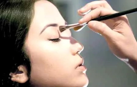 影色是收敛色,涂在希望凹的地方 或者显得狭窄的应该有阴影的。选择强调色时,要考虑自己的服饰和唇色与之相协调。比如,蓝色、褐色和灰色,往往给人以漂亮和时髦的感觉;紫色显得温和、幽雅;桃红色能增添妩媚动人的风姿;紫罗兰色给人以成熟的魅力;绿色使人有爽快的感觉;金属色彩一般是在舞台上使用的。