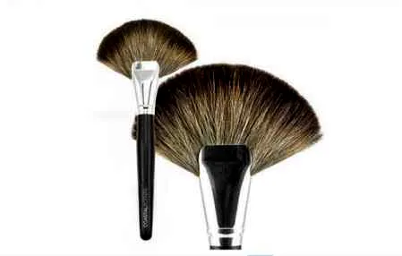 脸部的高光刷建议选择小一点,蓬松且长一点的刷子,这样不容易把高光上得很重,而且可以比较精准的把握位置。火焰苗刷、扇形高光刷非常适合打造自然款的妆容,抓粉效果也比较好。
