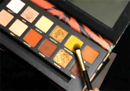 蘸取深棕色小范围的铺在睫毛根部,由下至上进行晕染;蘸取之前的暖棕色,将眼影衔接自然,营造层次感;用小刷子蘸取深棕色,加深下眼尾。晕染自然。