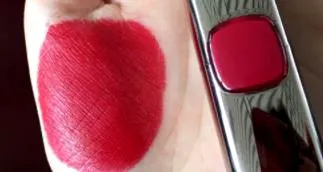 没有紫调,完全就是正宫红,想要气场两米八涂这个就对了。浅涂水红色,叠加个唇蜜妥妥的小草莓一只啊,可功可受的一支口红没错了。哑光口红但是不干,涂起来也是很顺滑的感觉,上色特别棒,遮盖力也是杠杠的,深唇什么的都适合。