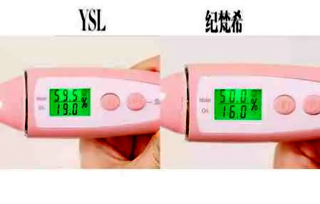 将两款口红并排涂抹在手背上,等30分钟后,用水分**笔测量该区域皮肤水分值,皮肤的初始含水量是37.9%。而圣罗兰的水份**是59.5%,纪梵希水份**是50.0%,其实两款都是比较滋润保湿的口红,但是相对比而言还是圣罗兰的圆管#45的滋润保湿度最好。