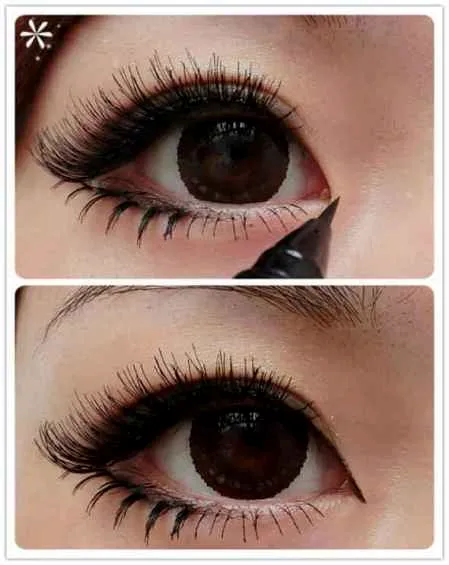 沿着睫毛根部画出流畅眼线,下眼睑尾部也要画上,这样才能让眼睛有御姐的那种成熟魅惑感。