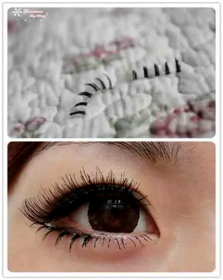 就算有睫毛膏还是不能少了假睫毛的威力,选择浓密卷翘的假睫毛沿着睫毛根部粘贴。