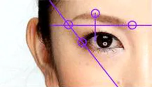 第一步:首先要先观察**眉头,要让**眉峰看起来在**黑眼球的外侧延长线上。眉尾的高度基本上是和眉头的高度相同。