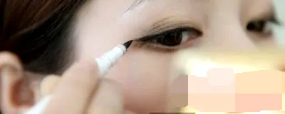 Step8:再接着用眼线液或眼线膏画出眼尾部分,眼尾向后拉出,微微上扬。然后补全整条眼线,一定要一笔完成。