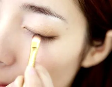 Step3:再用刷子蘸取裸肤色眼影,在整个眼窝处打底。(如图所示)