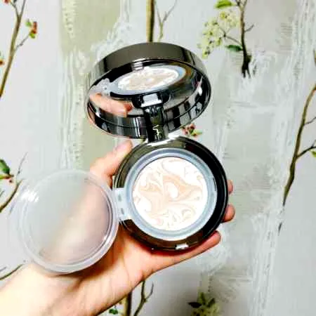 4、稍稍**在粉饼上按压一下,玻尿酸精华+宝石粉末成分+粉底一扑都有!非常的方便
