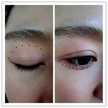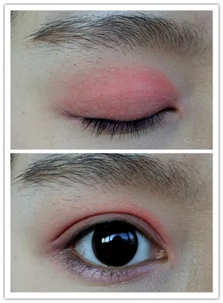 第二步:蘸取粉色的眼影涂在整个眼窝,下眼睑也需涂上。