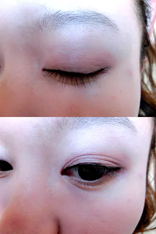 第二步:用浅色的眼影打在眼窝的位置,然后紧贴睫毛画上细细的眼线。