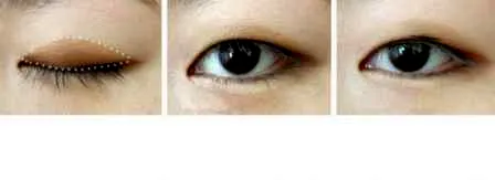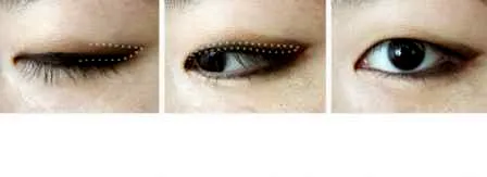 STEP6:用黑色眼线笔在睁眼时离睫毛1mm高处画出一条短线。