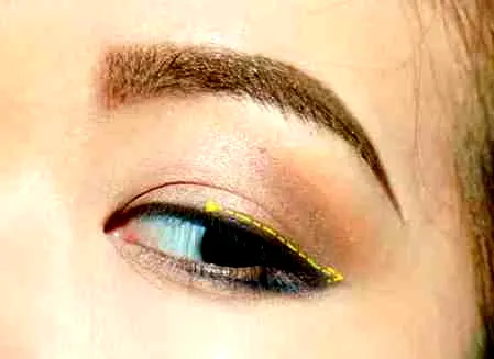 上眼线用眼线笔画,从眼中开始于下眼线链接。