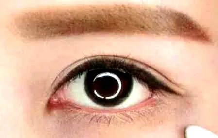 先用黑色的眼线胶笔完成内外眼线,眼尾自然留长一点点。