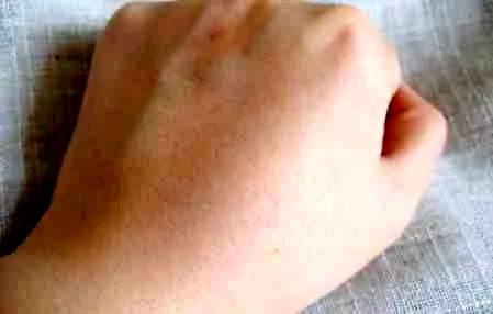 然后将沾满卸妆水的化妆棉片敷在手背上,30秒后即可取下。
