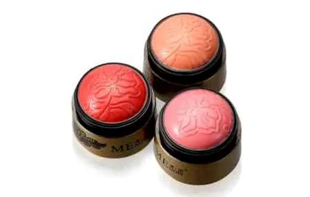 腮红膏多为膏状,质地顺滑软糯,莹润自然,膏状质地渗透性强。腮红粉则为压实的粉状,近期也有像一颗颗球似的或不同形状的压实腮红粉。
