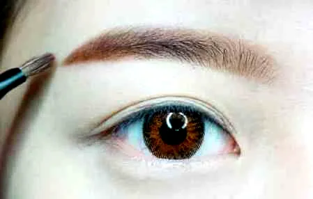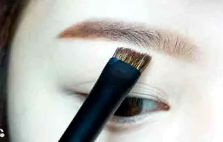 第三步:第二深色填充眉毛前半部分,眉头轻轻带过就好,用螺旋刷晕染开眉头。