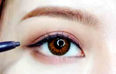 第五步:画眼线,选择一款黑色眼线笔,上引线眼尾稍微上拉,下眼线眼尾带过,画出眼头。