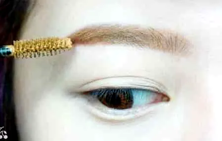 第四步:选择浅色染眉膏从后往前刷带到每根眉毛上,注意用量不要太多,不然很容易结块。