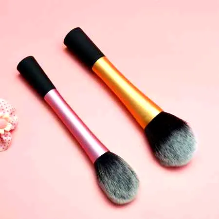 2、如果需要色彩强烈鲜明的妆容,并且化妆技术还可以的话,可以选用稍硬的腮红刷,这种腮红刷取粉多,用色范围精确,上妆迅速,对腮红位置和形状的手法把握要求较高,可以选用粗光锋羊毛质地的,还有很多牌子的尼龙纤维刷质量也不错,纤维刷的特点是容易保养,刷毛软硬度和弹性都适中。至于中光锋、细光锋的刷毛就更软一点,相差不是很多,也都是羊毛的。