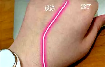 从图中可以看出上了粉底液的一般,肤色很自然,而且连手背上的小毫毛都隐形了,肌肤呈现哑光雾面的质感。