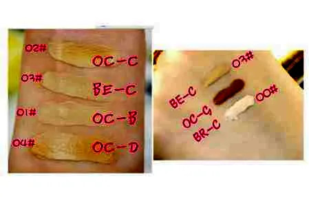 02#OC-C:自然色,一般的肤色都可以用,遮瑕力比01#好一点,很滋润,可以调节肤色不均。