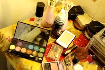 第一步:准备好眼影,隔离霜,粉底,腮红,口红**一系列的彩妆工具。
