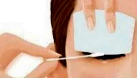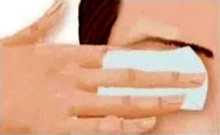 第四步:最后用化妆棉的四角轻轻擦拭下眼皮,将掉落到下眼皮的眼影和眼睫毛擦干净。最后用棉签将残留的睫毛膏擦拭干净。