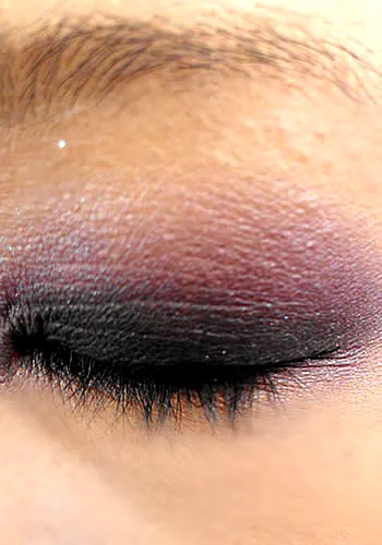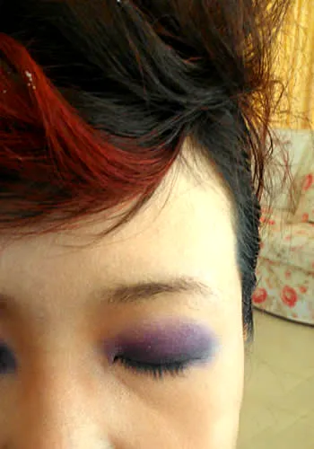步骤三:下眼影也是一样的,依次是浅紫色—深紫色—黑色。