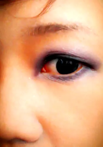 眼睛放大对比图:眼影颜色是紫色+黑色,对比有木有!差别大成这样,赶紧动手学习画吧!一秒钟眼睛放大N倍!