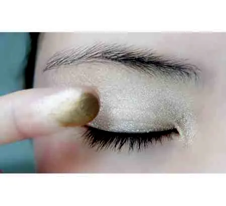 第八步:用银白色的眼影提亮眼头位置。