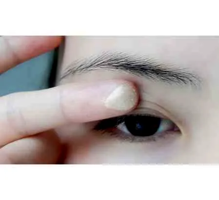 第三步:先用a色眼影打底眼窝。