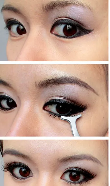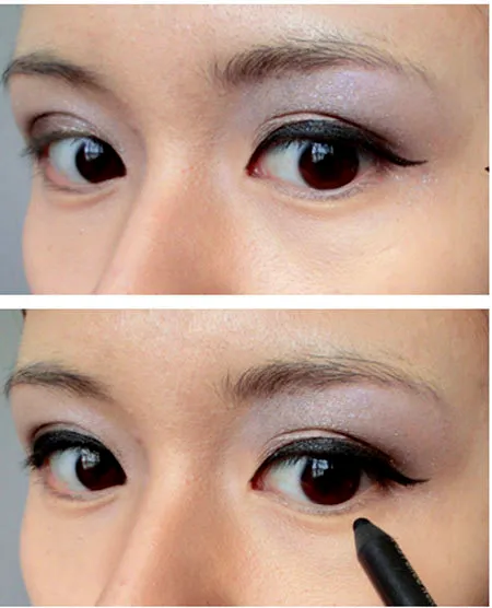 第五步:下眼线也要画满喔!这样才会更显电眼妆的闪闪电力。然后用睫毛辅助器粘贴好假睫毛。