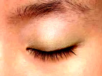 先在整个眼窝处轻轻刷上一层珍珠色眼影提亮眼睛。
