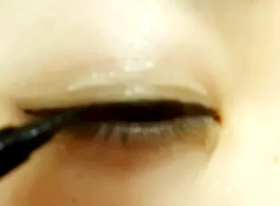 沿着睫毛根部画眼线,眼线要粗一点,以免看不出效果。