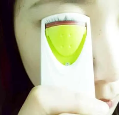 使用电动睫毛夹将睫毛夹卷翘,从睫毛根部依次往上夹。