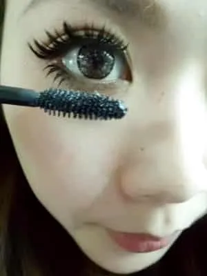 在下睫毛没有粘贴假睫毛的部分刷上睫毛膏,以Z字型手法涂刷避免苍蝇脚。