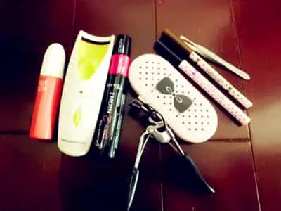 首先,看看我们为内双眼MM准备的眼妆单品:假睫毛胶水、电动睫毛夹、睫毛膏、假睫毛、眼线笔、双眼皮贴。