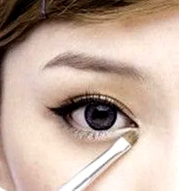 Step5:然后用眼影刷蘸取适量银白色的眼影,从眼头扫至眼尾,往眼尾眼尾眼影应该越淡,且范围不能超过卧蚕,不然会破坏眼妆的美感。