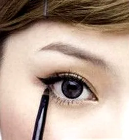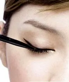 Step2:再用眼线膏,在眼尾处以45度往上,先拉出一厘米左右的角度。